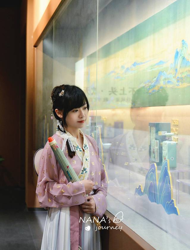 最喜欢的是一楼的书法展厅,从没见过这么美的书法展示,当人穿梭在悬挂的书法长幅中,新国风的味道立马涌起。可惜现在没有光影秀,现在艺术的呈现总会让我每一次都有新的心动体验。