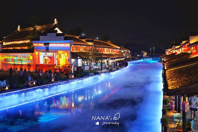 古镇不算很大,热闹区域主要集中在河道两侧,沿河的廊街,通往三座古桥相接的汇河口,融光广场的灯光秀照亮了每个人脸上的笑容。