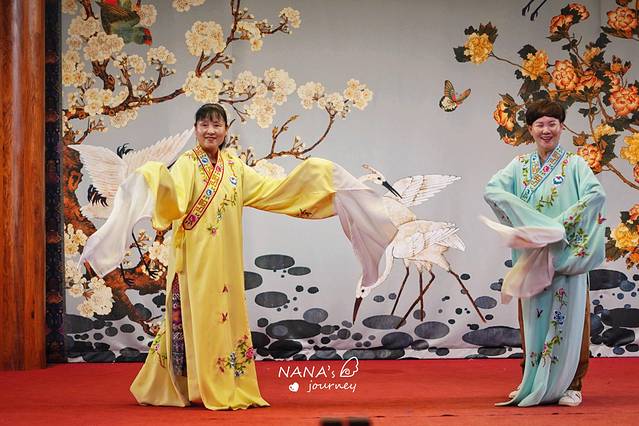 穿着戏服的女子越剧演员,唱着越剧,摆着动作,甩着水袖,演出了一幕幕什么感动的剧情,我们也被这美妙的曲调所吸引了。