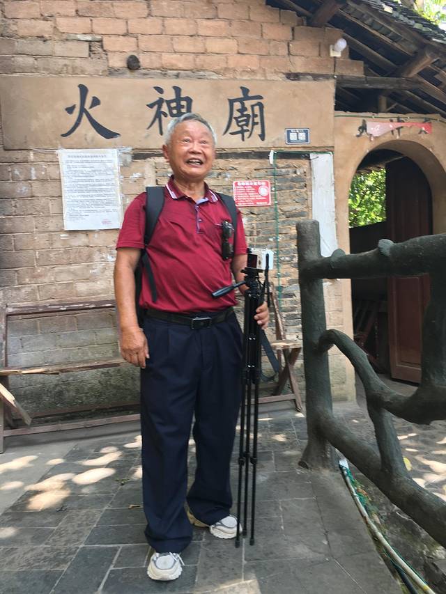 在镇远府卫城遗址的最高点认识下面这位73岁的老人家,他拿着相机和相架,顶着炎炎夏日。