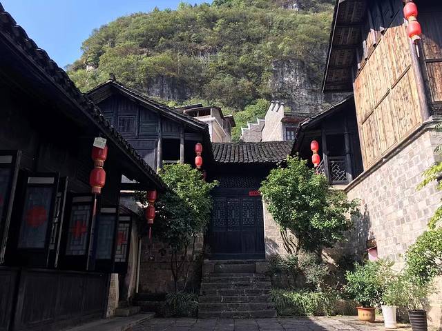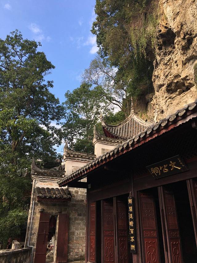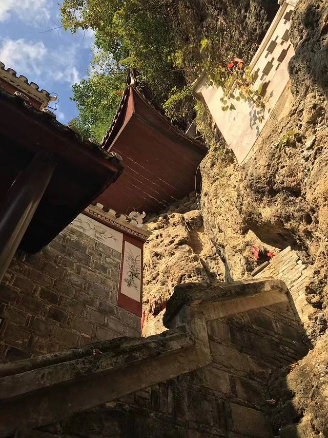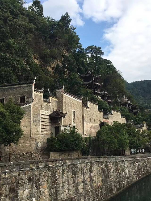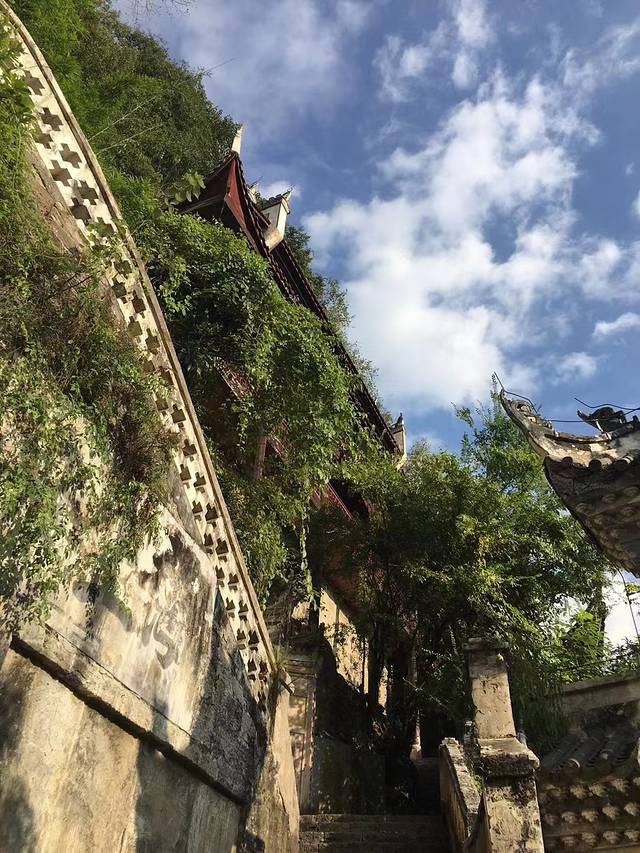 飞岩翘角、贴壁凌空、红墙青瓦的殿阁楼台,确实气势宏伟。造型独特的建筑物与悬崖、古木、藤萝、岩畔、溶洞天然合成,融为一体,既有临江远眺的吊脚楼,也有幽邃的寺院禅台,可谓集天下山水楼阁荟萃为一方。