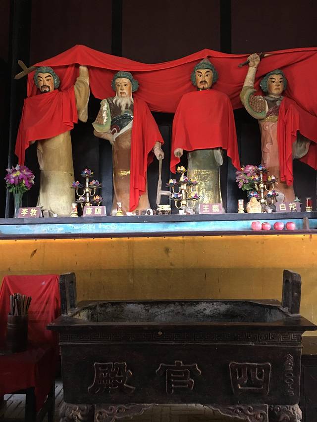 这里供奉着镇远的镇城之神:分别是战国时期四位声名显赫的战将--白起、王翦、廉颇、李牧。原本敌对的秦、赵两国名将被供奉在一起,看上去滑稽,实则是黔地民众敬佩名将、崇尚武功使然。