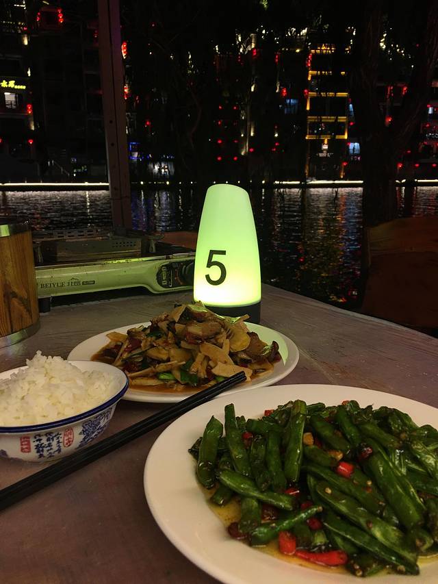 舞阳河岸,到处都是慕名来吃酸汤鱼、豆花烤鱼的,点了份本地腊肉炒鲜笋+干煸豆角,这段时间各种酸粉酸菜,就是想安安静静吃次正常口味的米饭。共计80元