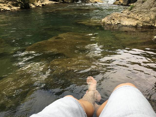 溪水清澈,很是清凉,将脚泡入其中,在水中漫步,迟迟不想上岸,又何止是一种舒服?