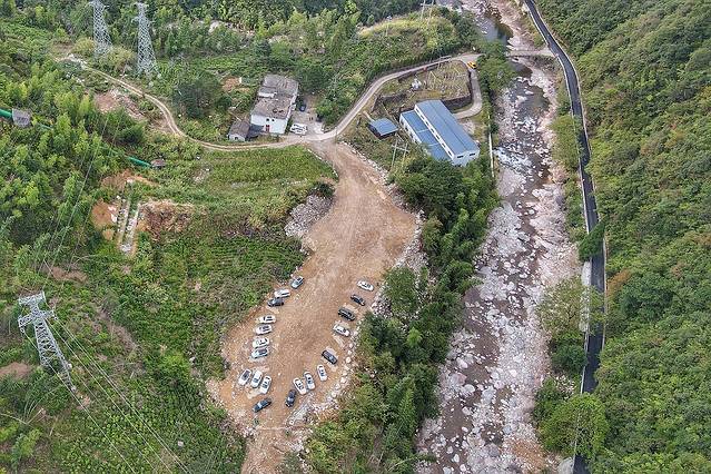 停车场真大!这可以停近百辆车呀。不过,也只是村里刨掉山头整出来的平地而已,来一台车就能卷起一阵黄色风暴。还没到正午,摆摊小哥就开始工作了。我带小朋友先去溪里探查一番。