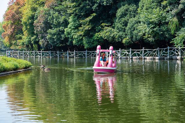 大草坪的边上,可以带着家人和孩子,一起乘坐小游船,喂一喂黑天鹅。