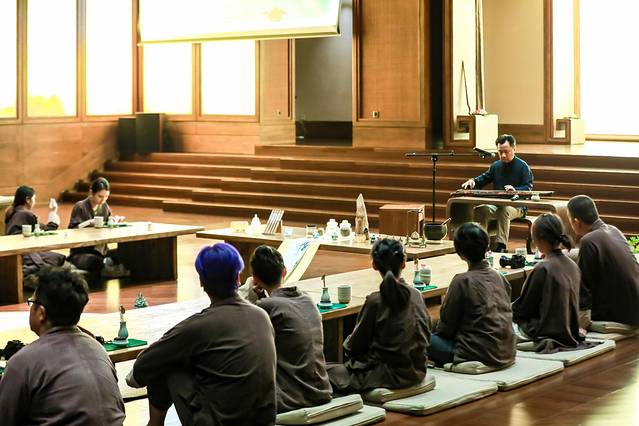 因缘和合,今天和同伴们一起,来到灵山胜境,放下尘世的嚣扰,瞻视绵延的远山,抚摸青青翠竹,感受大佛的包容。在灵山精舍,体验一段欢喜,静心的禅意生活。换上粗麻细棉,褪去无用装饰,放下手机,泉水净手,盘腿而坐。等待老师们,以心印心的分享。