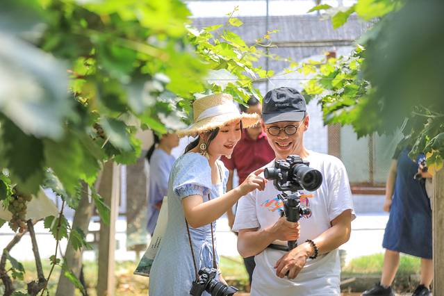 你也可以走到七彩葡萄庄园里,感受亲自采摘葡萄的乐趣。