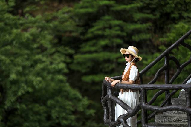 下了索道往观音宕方向的首个挑战就是“好汉坡”。好汉坡全程有1188个台阶,坡度高达45度,光听它的名字就应该知道有多险峻。不过还好的是,一路上有多个休息点,可以爬一段休息一下补充体力和能量继续前行。
