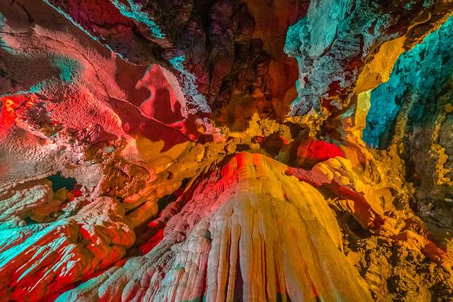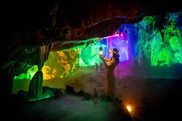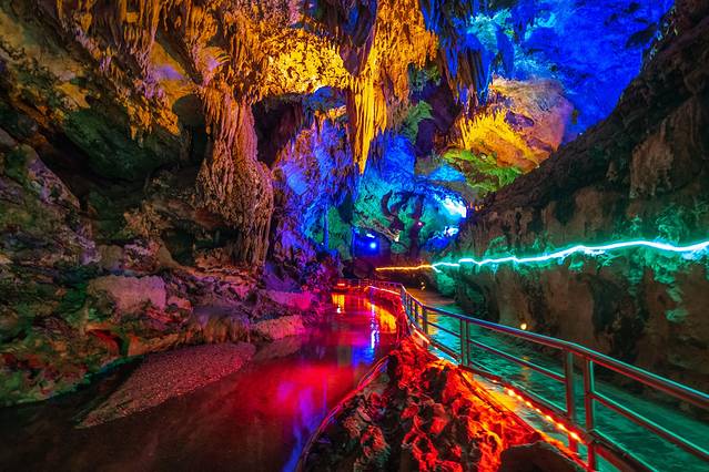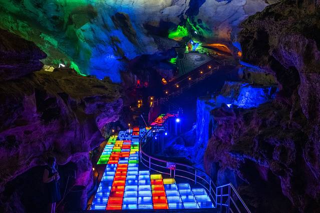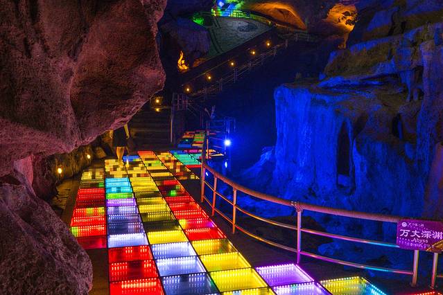 在洞内的有一处大厅,这里定时会上演孽龙洞传说的激光秀演出,蛮值得一看。