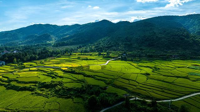 层层叠叠的梯田种植着富硒稻谷,这里出产的大米据说非常好吃!