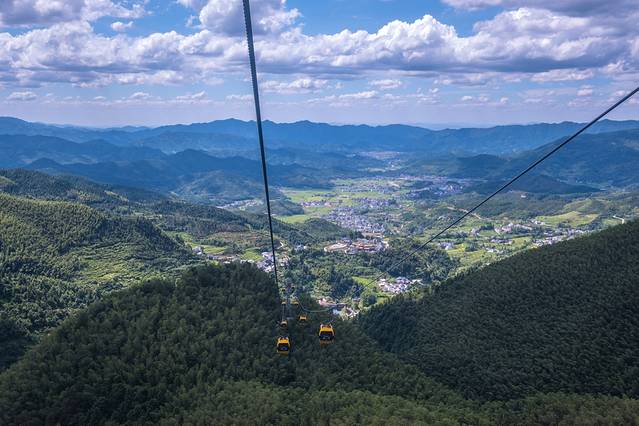 坐在缆车上,随着海拔一点点升高,都能感到从外面吹来的一丝凉意。武功山,真不愧是避暑胜地呀!