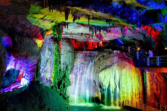 而洞内的“洞天飞瀑”更是一绝,瀑布飞流而下,在洞穴内尤为壮观。