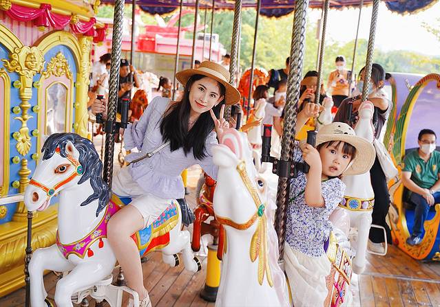 乐园游玩项目较多,如果碰上节假日,光是带着宝宝玩阿熊乐园,2个小时跑不掉,但是有很多项目对小朋友是有身高限制的哦,由于云宝身高不够,适合玩的只有旋转木马“甜蜜旋律”,如果身高在1.2米以后的小朋友那都可以玩哦。在这个一站式的园区里,你想要的美好这里都能找到。