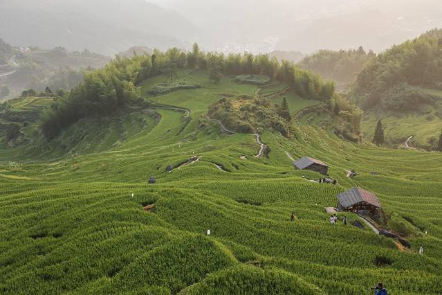 虽然没有看到传说中的日出云海,但阳光照射在气势磅礴的梯田之上,生机勃勃,已然令人感动。