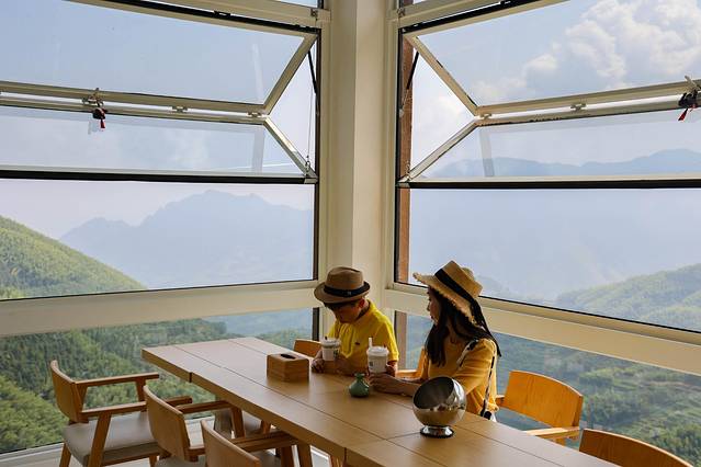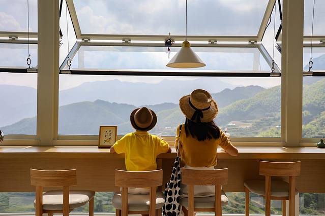 户外的梯田景致在眼前一览无余,真真正正是位于云端的美貌咖啡馆。