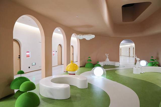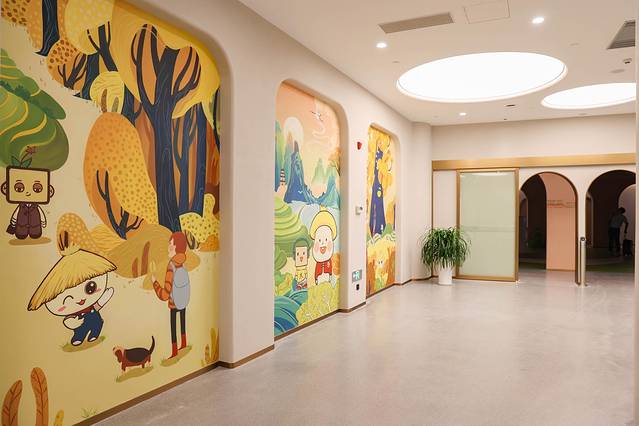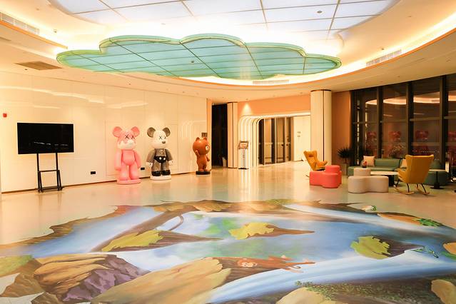 不论大厅还是走廊,目及之处的公共区域可爱而萌趣。