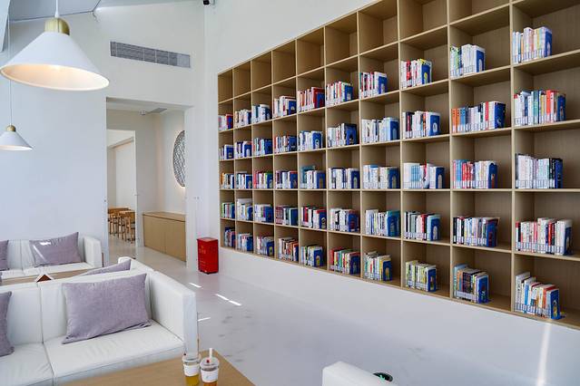 当然云端美咖不仅拥有无敌美景,配置也很丰富,1楼有游戏机和桌上足球,2楼有个小型的图书馆。