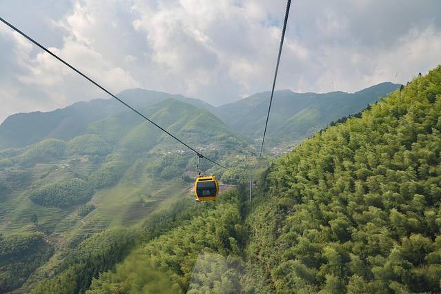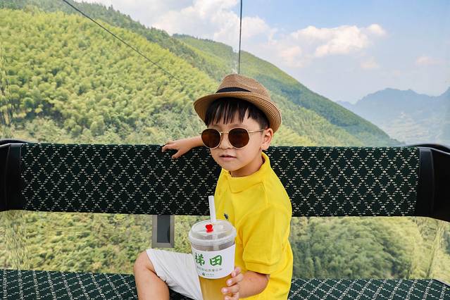 在索道里就能欣赏到绝美的梯田与漫山遍野的竹林,天气晴好,天边白云朵朵,就像是坐在一辆童话小车里,一路有看不厌的美景相随。