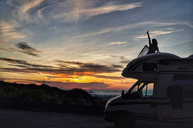我喜欢看日出。因为那是沉睡的大地初醒的样子,那是光芒变幻莫测的时刻。而我们所要做的,只是找个地方安静地坐着,看她完成今天的第一场表演。房车也确实提供了最佳的解决方案,因为我睡帐篷不舒服。帐篷里闷热,充气垫睡着也不踏实。