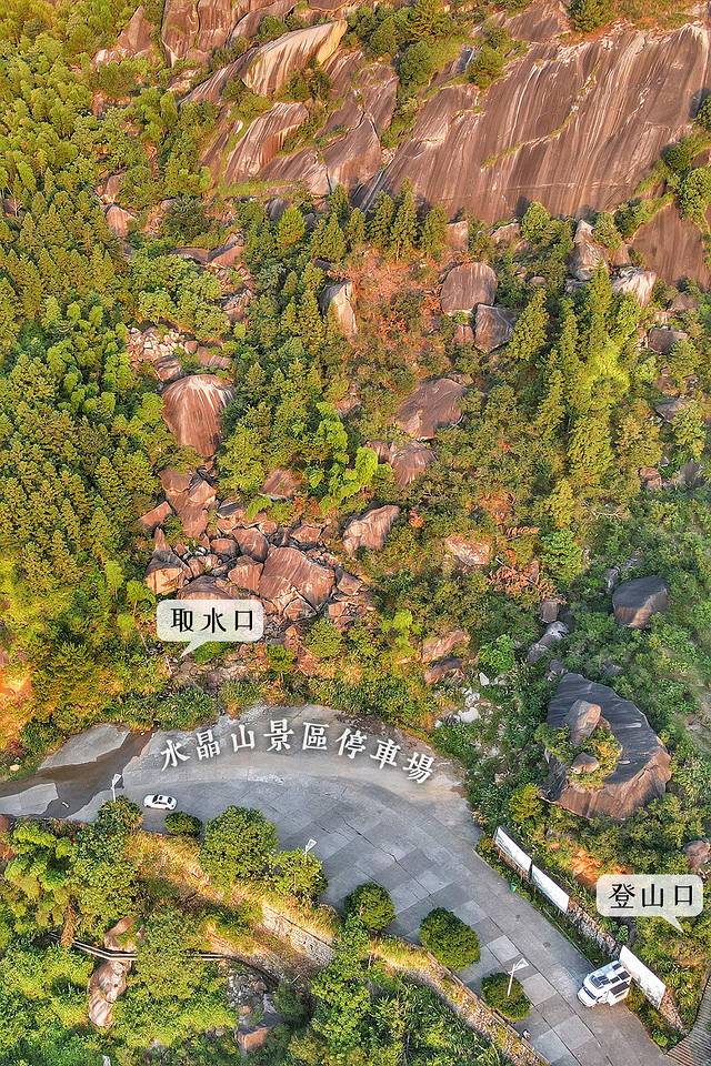 停车场边,有 2 米多宽的台阶路,能通到花岗岩山体的根部,那有个自然村,叫“水晶山林场”。村里有山路,可以通到水晶岭。
