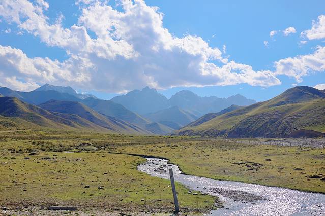 一路上基本都是这样的,高山田园雪山和新鲜的空气,这真是城市中少见的风景。这次我虽然拿着驾驶证,但只挨上了副驾的位置,因为有个不愿意坐车却喜欢开车的好大哥,这才让一路上我可以轻松的去赏美景。