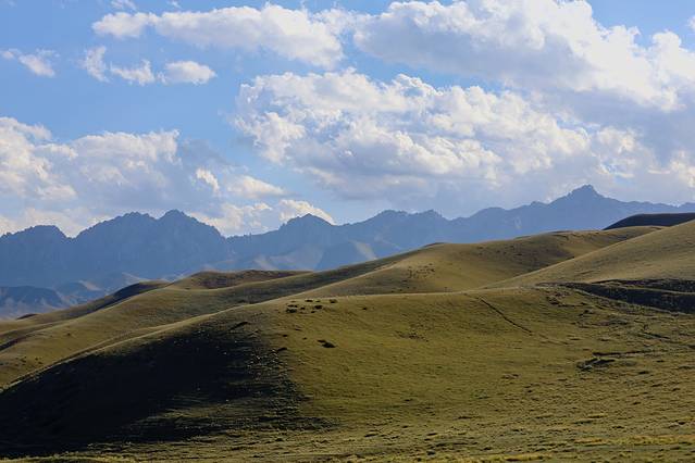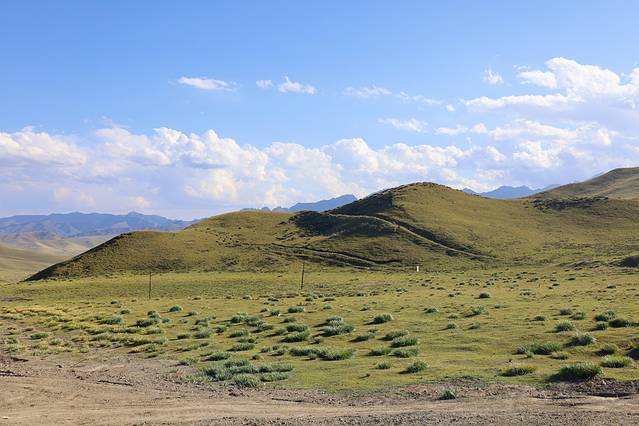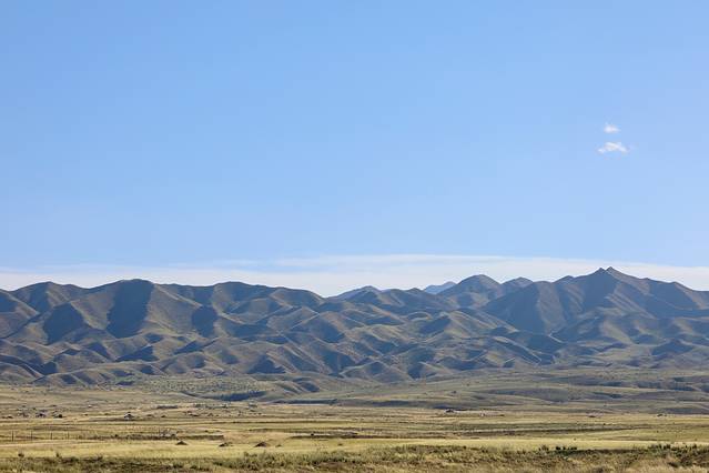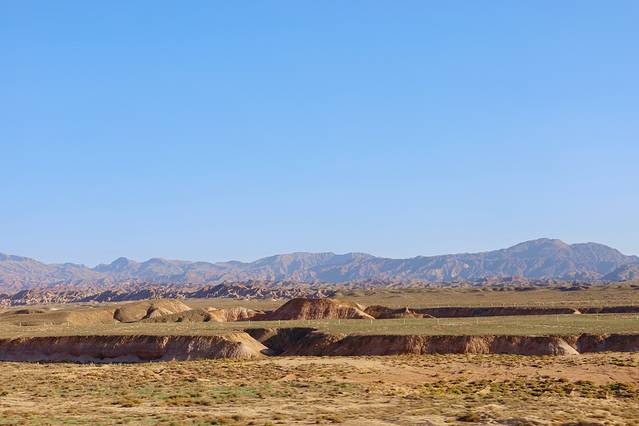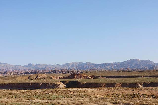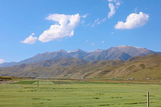 于是我们几人组成了探秘古城团,没有选择休息直接开车前往骊靬古城,不得不说沿途的风景是真好看,连绵不断的高山、一望无际的草原、农田里都是辛勤劳作收获粮食的村民们,加之当时天气绝佳我们都还觉得这趟绝对不虚此行,但喜悦的背后会隐藏着无尽的失望。