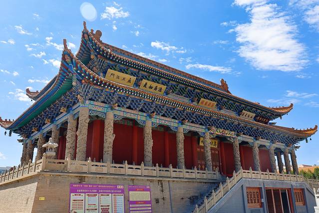 在我们东北有这样一句话“宁舍一顿饭 不舍二人转”,对于我来说“宁舍一顿饭 不舍寺庙与博物馆”,其实这个寺庙并不在行程中,当我们车辆驶进武威城区时,我们在车中看到这座庙宇,加之领队的介绍就很想走进去看看,当所有人都去吃午饭时,我跟大哥果断决定午饭不吃去逛寺庙。