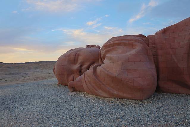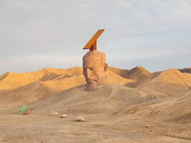 来到瓜州我们并没有吃瓜,而是将车直接开到戈壁滩深处,在夕阳当中大地之子面前开了一场小型音乐会。