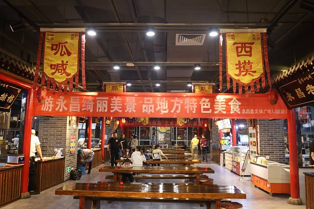 这是我们吃晚饭的地方叫钟楼小吃城,很多当地特色传统小吃在这都能品尝到,而且装修风格也很符合当地民俗特色。