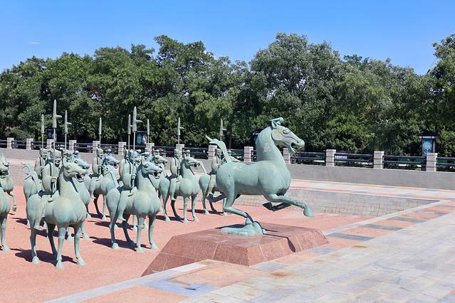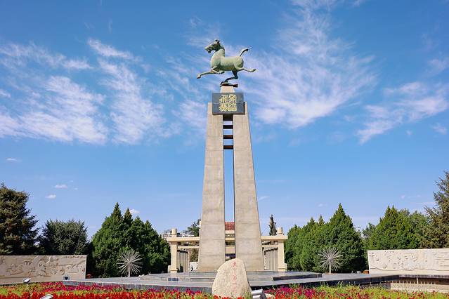这是在武威市区内逛的唯一景点,说起雷台汉墓可能大家不太熟知,但提到中国旅游标志“马踏飞燕”肯定是妇孺皆知,没错国宝级的铜奔马就是从这里发掘出来的!
