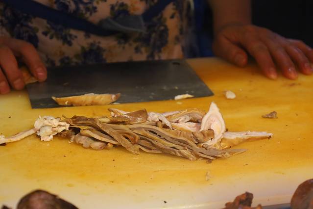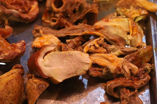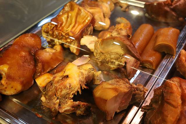 没错这里的面条叫做“饧面”,里有木耳、蘑菇、黄花和芫荽等少量菜丝制作的卤汁浇在面上,肘子肉熟而不柴、肥而不腻,还有薄片好像是火腿,茶就是标配香甜可口,就像喝热可乐的感觉,但又很健康还免费续。