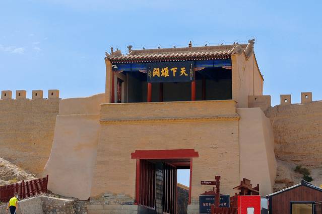 嘉峪关地处最狭窄的山谷中部,城墙两侧均为沙漠戈壁,北连黑山悬壁长城,南接天下第一墩,是明长城最西端的关口,历史上曾被称为“河西咽喉”。