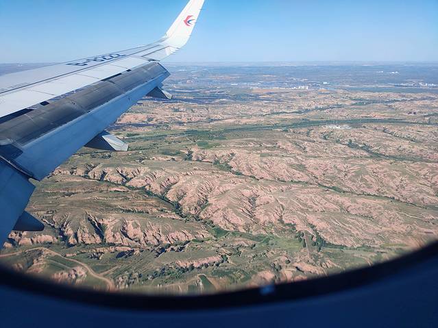 通过飞机舷窗看到大地从海洋到平原,又从平原到黄土高原,最后看到戈壁,对于这次行程我是充满了无限的好奇。