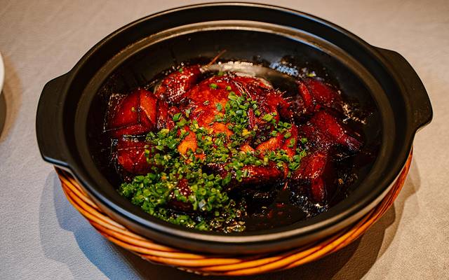 香芒辣子鸡周围围的一圈乍一看是鸡蛋,实际上是芒果胶囊,爆汁的感觉真的让整道菜都不一样了,甘甜的芒果组合让爆烈的辣子鸡都变得清爽了几分。