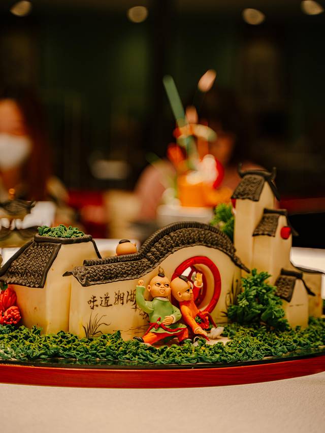 “越女天下白”这道菜被做成了文房四宝的样子,不仅名字美丽,造型更是和唐诗主题相得益彰。