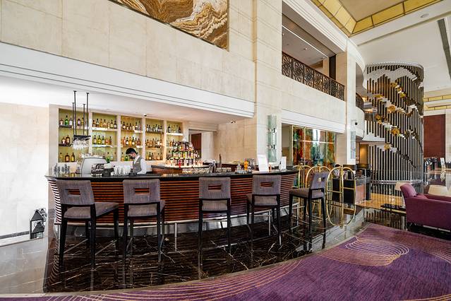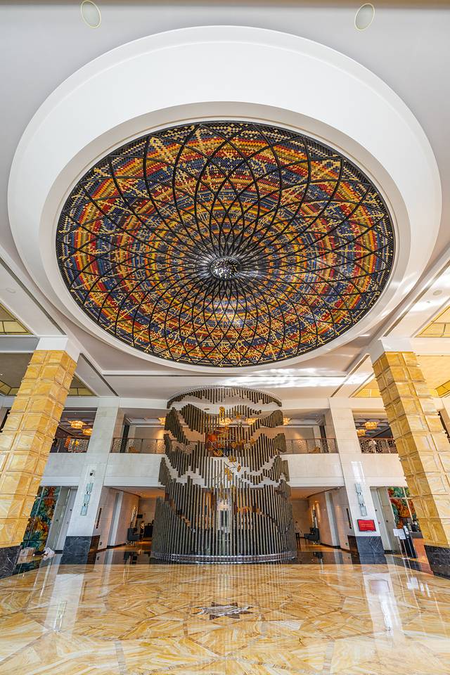 步入大堂,欧式穹顶便引入眼帘非常吸眼,站在穹顶中间说话还会有回音,设计创意十足。绚丽多彩的灯光、颜色亮丽的瓷砖的设计风格,更显得酒店奢华大气。