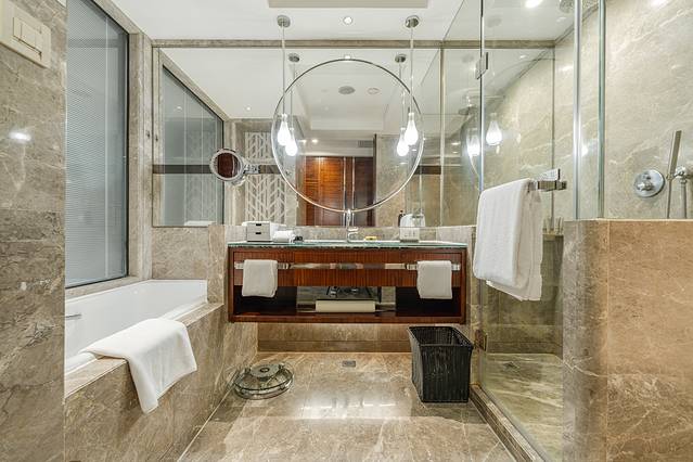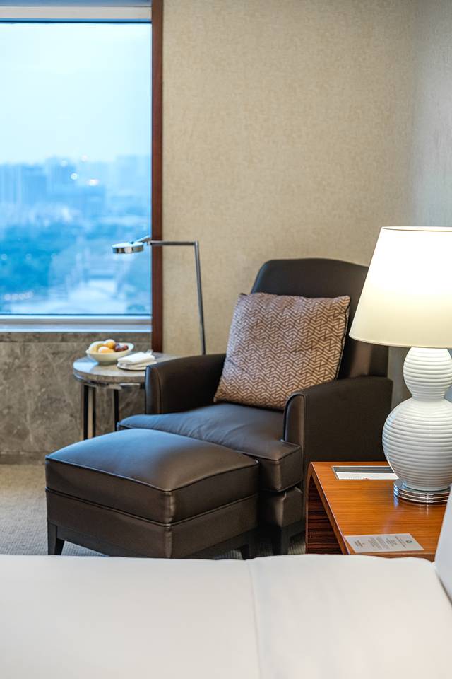 房间面向「千灯湖公园」,倚窗即能眺望到公园景色以及城景风光。房间装饰新中式风格,超大的卫浴间以及大浴缸深得我心。房内设施齐全,吃着赠送的岭南佳果,再泡一杯香茗,一边品茶一边欣赏窗外风景,身心皆愉悦。晚上再观赏千灯湖的灯光秀,在迷人的夜色中酣然入睡……