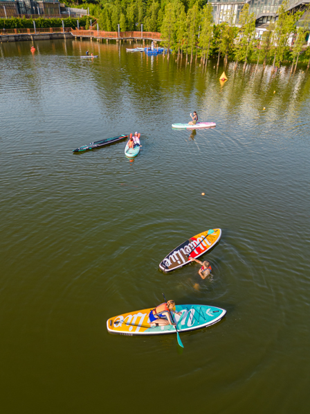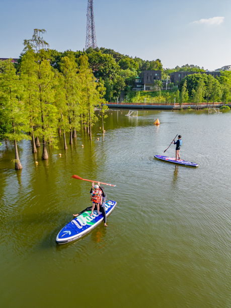距离酒店30分钟车程的「菁邦体育水上桨板基地」就是一个体验桨板运动的最佳选择地。基地位于南海大学城内,拥有13000㎡水面,可同时容纳多达50个桨板活动的场地,不管是成人还是小孩都非常适合。