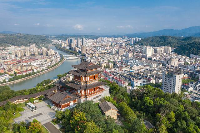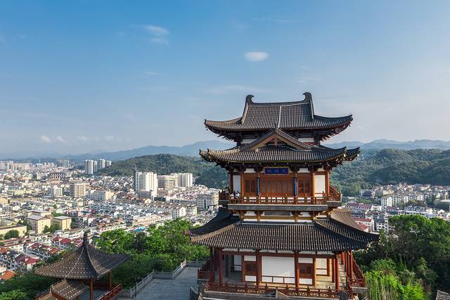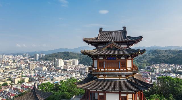 鼓山公园最具标志性的就是鼓山顶的天姥阁,天姥阁高约35米,与天姥山遥相呼应,也可俯瞰新昌县城,远眺天姥风光,与新昌的唐诗文化“零距离”接触。