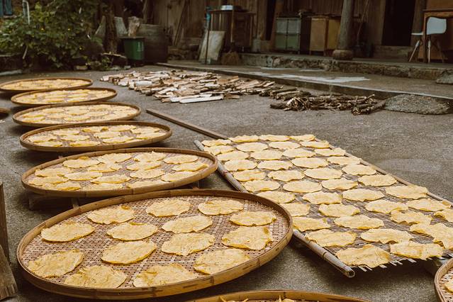 春采茶叶,夏制笋干,秋收香榧,冬卖香榧、茶叶、玉米饼……在这里,勤劳的村民一年四季都有钱赚,尤其是外婆坑的玉米饼,声名远播,在贫穷时代,它是充饥的粮食,如今它是外婆坑一道招牌点心。