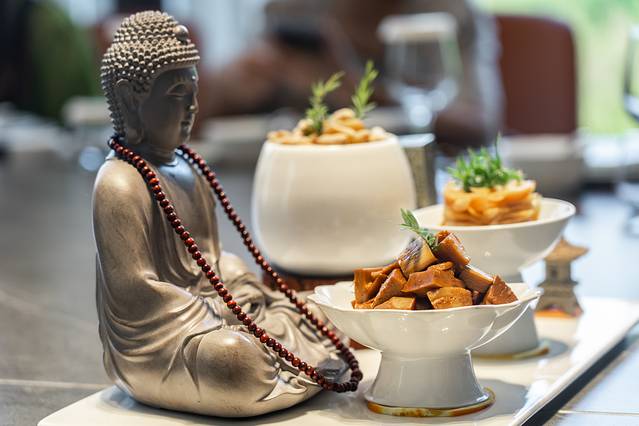 新昌品尝唐诗宴的地方有很多,我们唐诗宴的第一站选择了印象新昌,这里位于鼓山公园山脚下,环境和氛围都无可挑剔,这里的每一道菜都给人诗意般的享受。