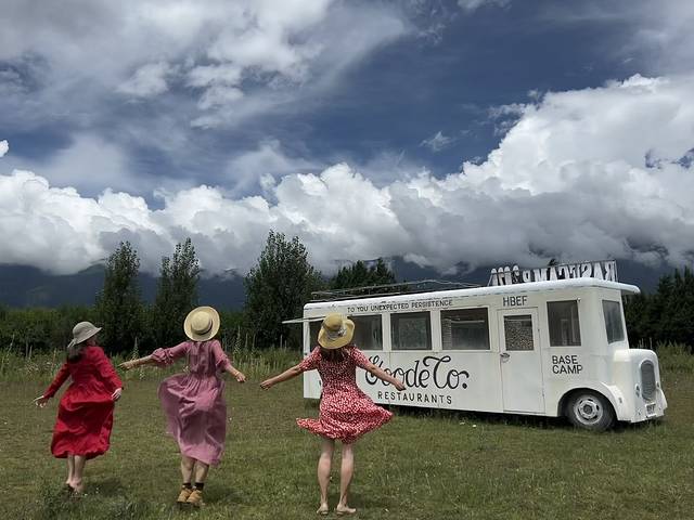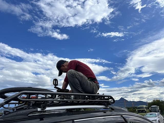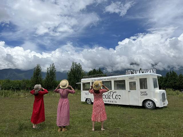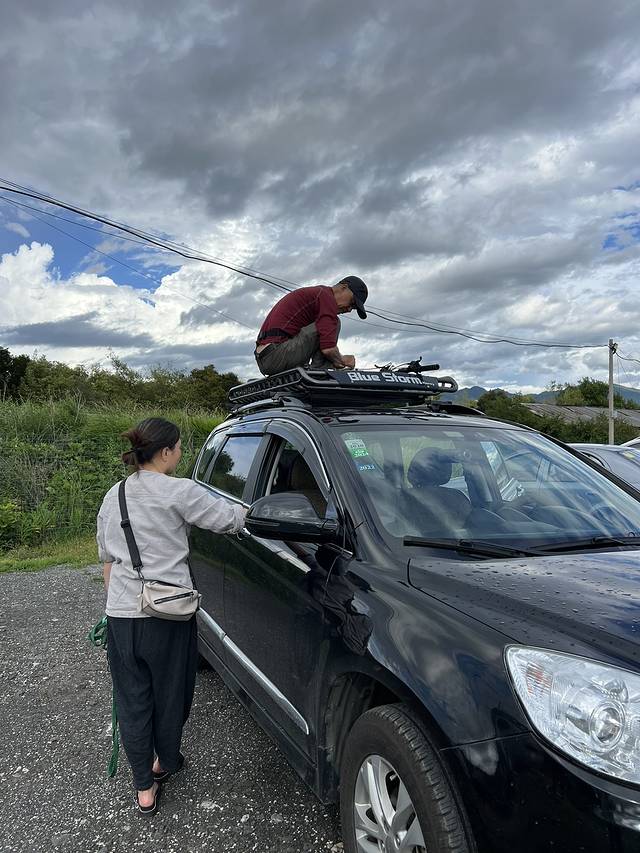 路上遇到一片草地,一辆车停在草地上,几个小伙伴也玩了半天。