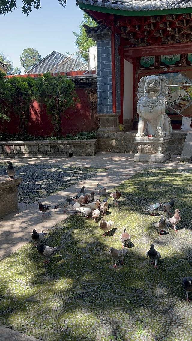 寺庙门口很多鸽子,也不怕人的,自在得很。