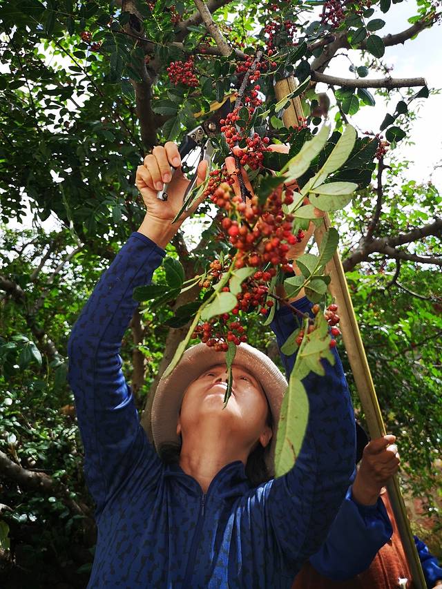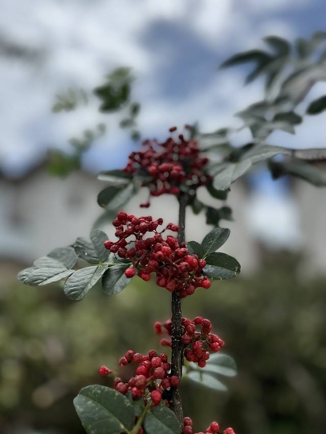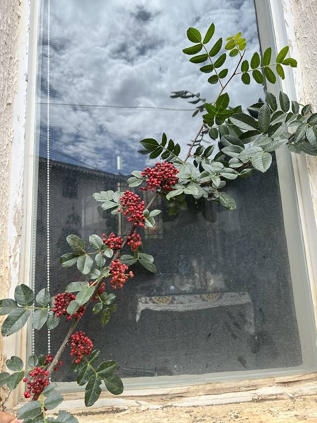 我们住的后面就是一棵花椒树,结的果是红色的,特别漂亮。