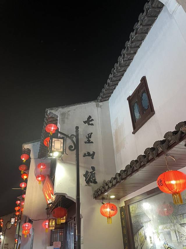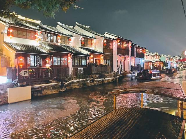 如果说七里山塘什么最迷人,大概就是这夜色了。所谓夜色撩人,这里的灯光,房屋,以及水流完美组合成了这一特色。