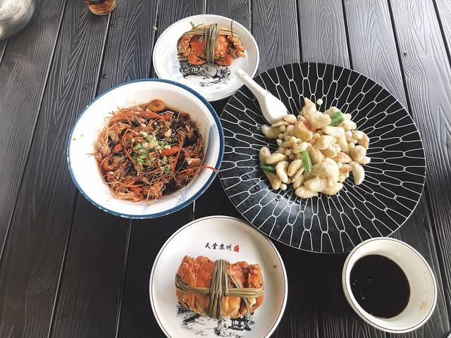 阳澄湖附近的农家乐特别多。我们找了一家农家乐,正是店里生意很好的时候。。店里的河鲜很多,我们重点吃的就是大闸蟹。不得不说,正宗的大闸蟹味道就是好,满满的蟹黄,美味极了。