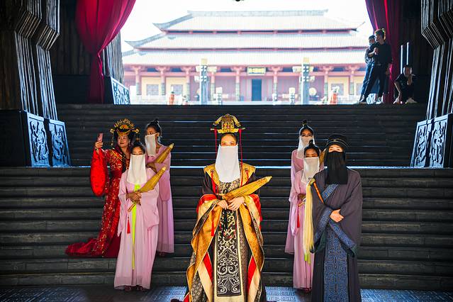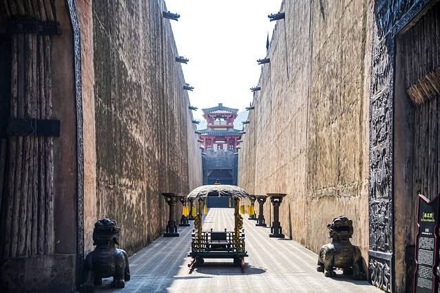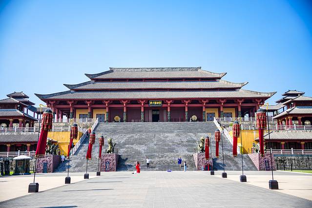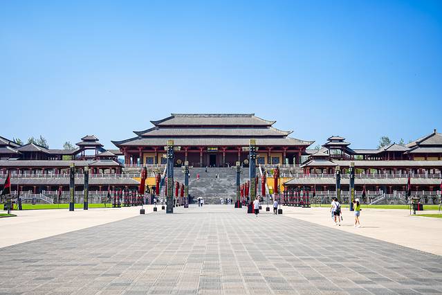 秦王宫景区位于横店影视城内,是1997年为著名导演陈凯歌拍摄历史巨片《荆柯刺秦王》而建。这里可以说是众多影视大片和历史正剧的摇篮,《英雄》、《寻秦记》、《木乃伊3》及《美人心计》等近百部影视剧大片都在这里拍摄。