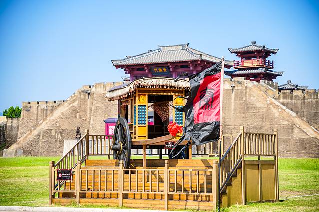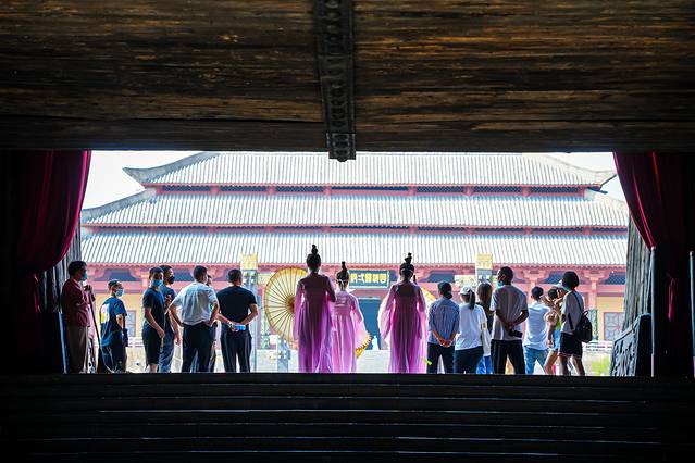 四海归一殿旁边的东望楼曾经是《英雄》的拍摄地,如今在楼旁边的东偏殿内可以欣赏到演绎表演秀《英雄比剑》,在西望楼内可以看到《梦回秦汉》。
