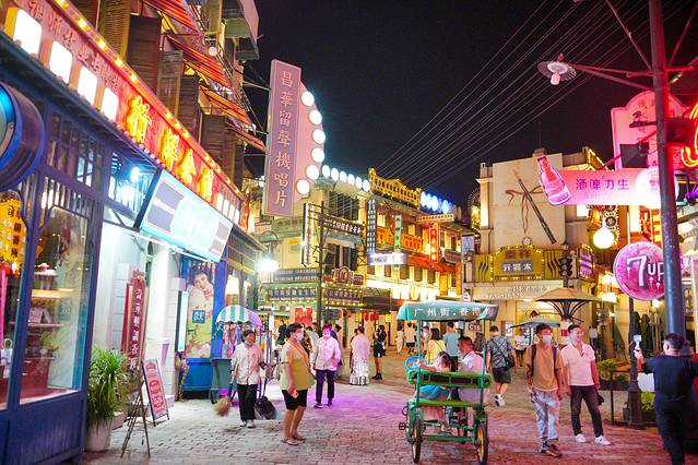 晚上的广香街纟白天更热闹,各种广式的灯亮起,拍照很出片!